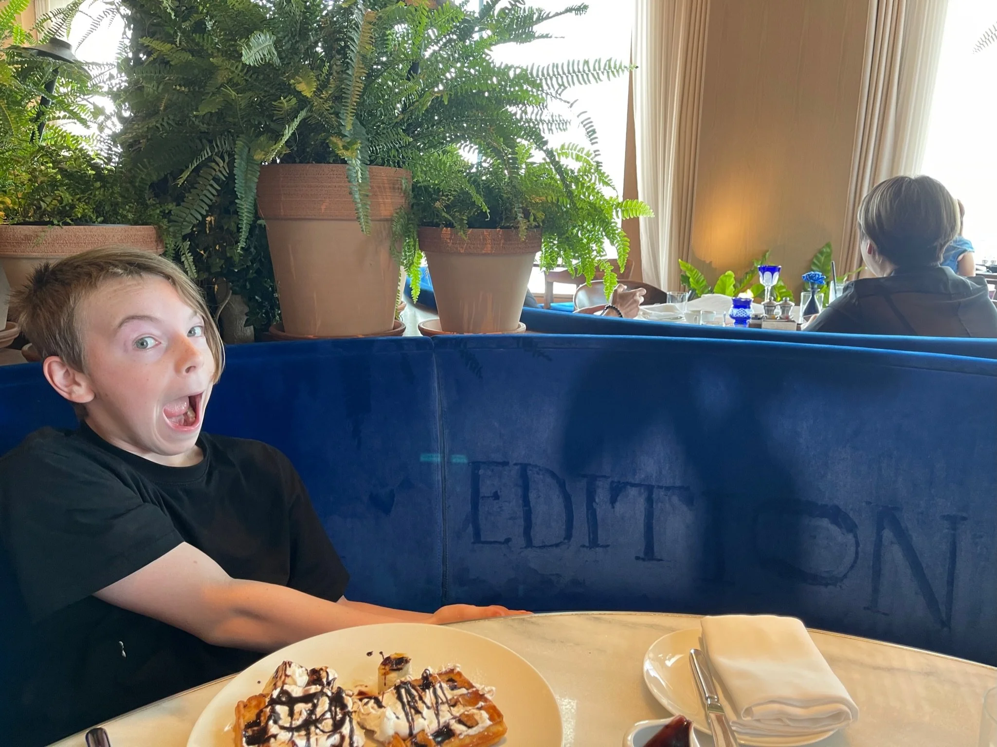 Stepping into the lobby, we walked down a clean hallway with a miniature gallery hang and the other hallmark EDITION elements—an EDITION jungle, lobby bar, and restaurant. While awaiting the check-in process, we met the magnanimous Diego and felt immediately at home. After a few minutes we explained our passport concept and our reputation had preceded us as Anshul the GM stepped up and introduced himself. We presented him with our first official EDITION printed passport (don’t worry Tampa, Miami, Times Square and NYC yours will be mailed soon!). We laughed and had a great time as not only did he stamp our passports but had the kids stamp and sign his as well :)