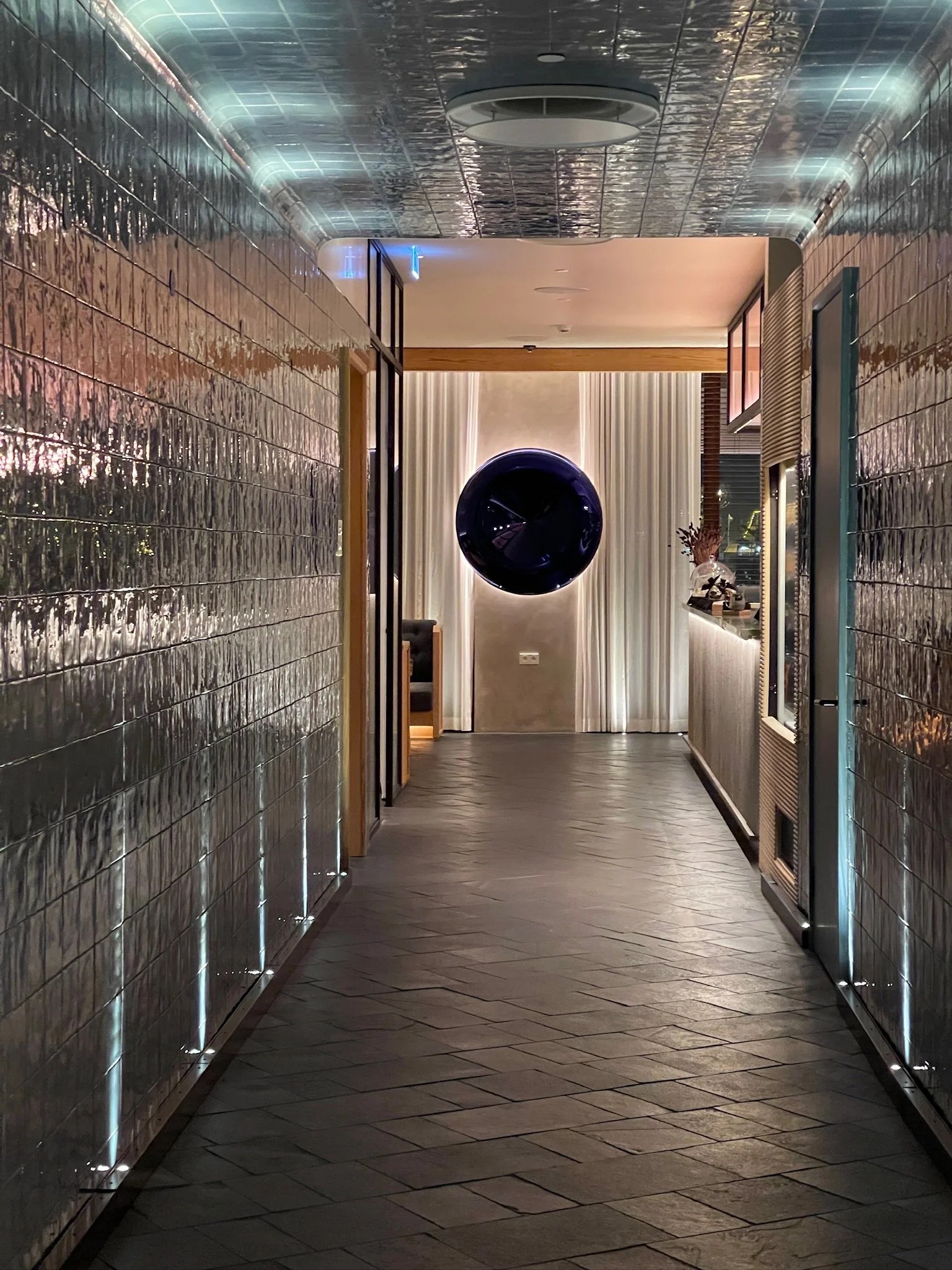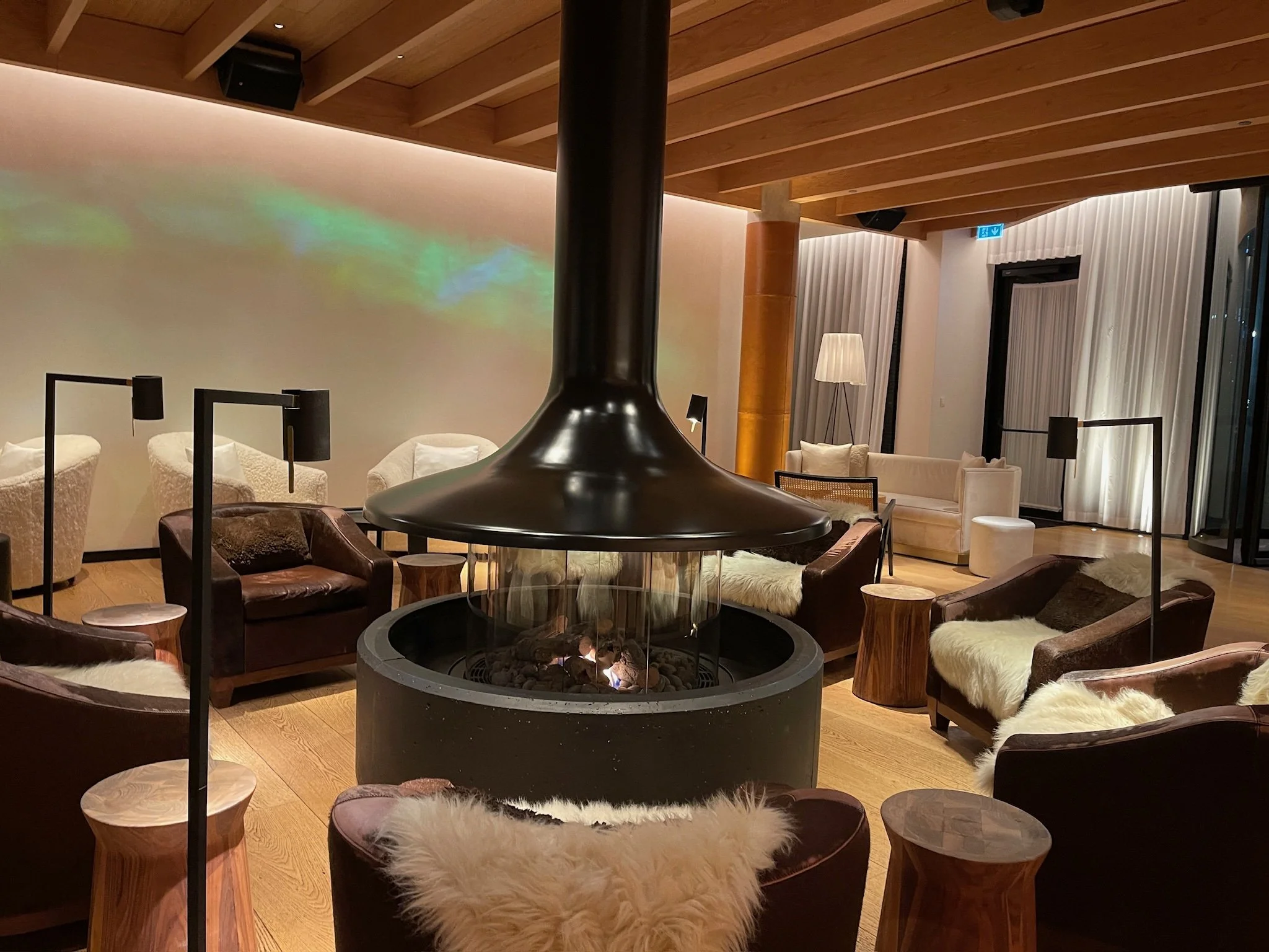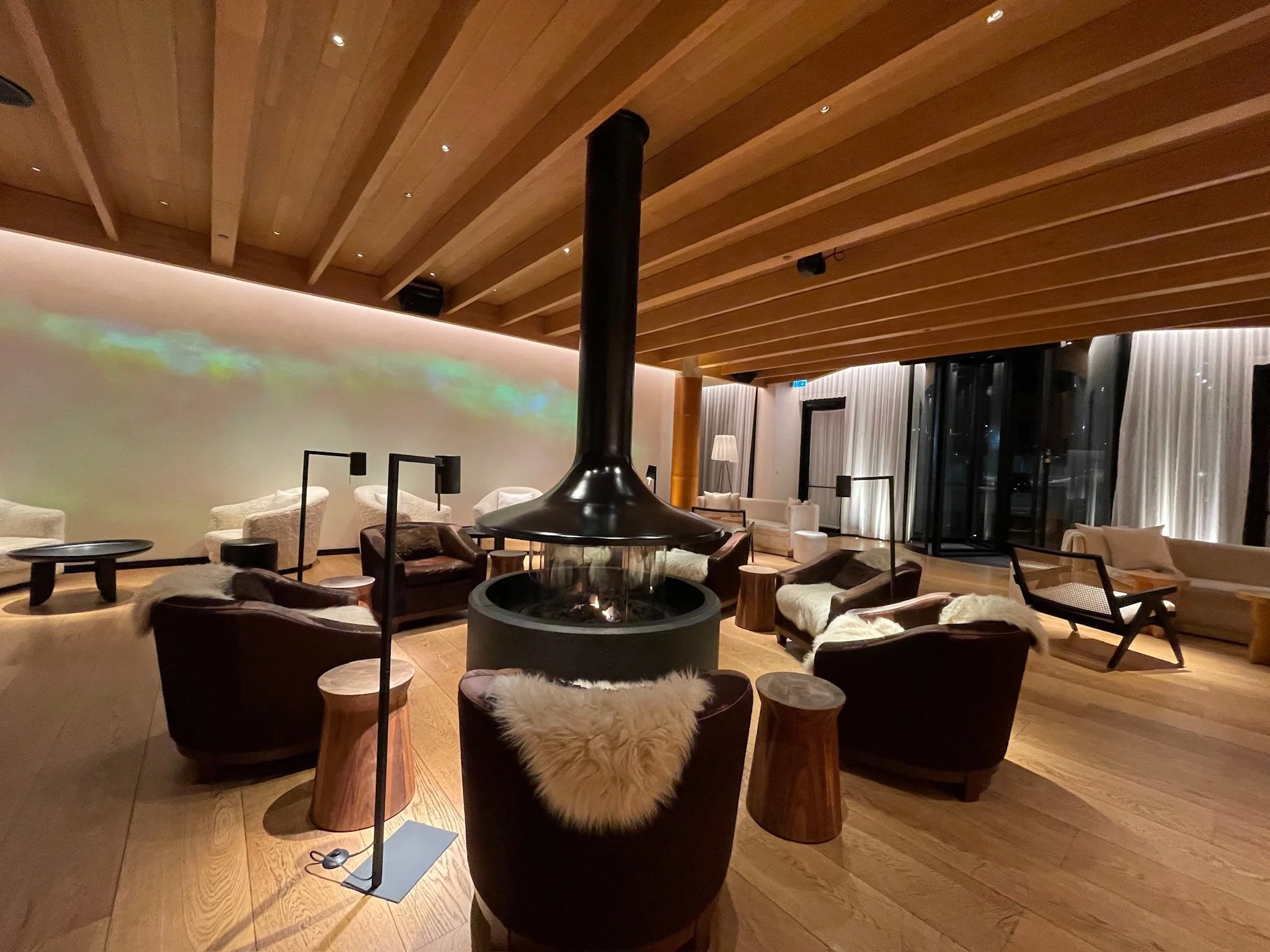 We eagerly awaited our visit to Iceland to the EDITION at the top of the world. We arrived about 4 hours later them planned due to an air traffic control strike but finally we made our way to Reykjavik! When we entered it felt like a cozy lodge. A unique rock formation which I found out is called a cairns was used by native people to to show the way. These old stone cairns acted as beacons for people travelling in Iceland, a kind of GPS system of the olden days. This cairn was surrounded by black wool cushions and showed us the way to the amazing lobby with a fireplace centerpiece and a projection of the northern lights on the wall . We checked in and were greeted by David who shared that we were fortunate to receive a remarkable upgrade to the second nicest room in the hotel, and it exceeded all expectations.