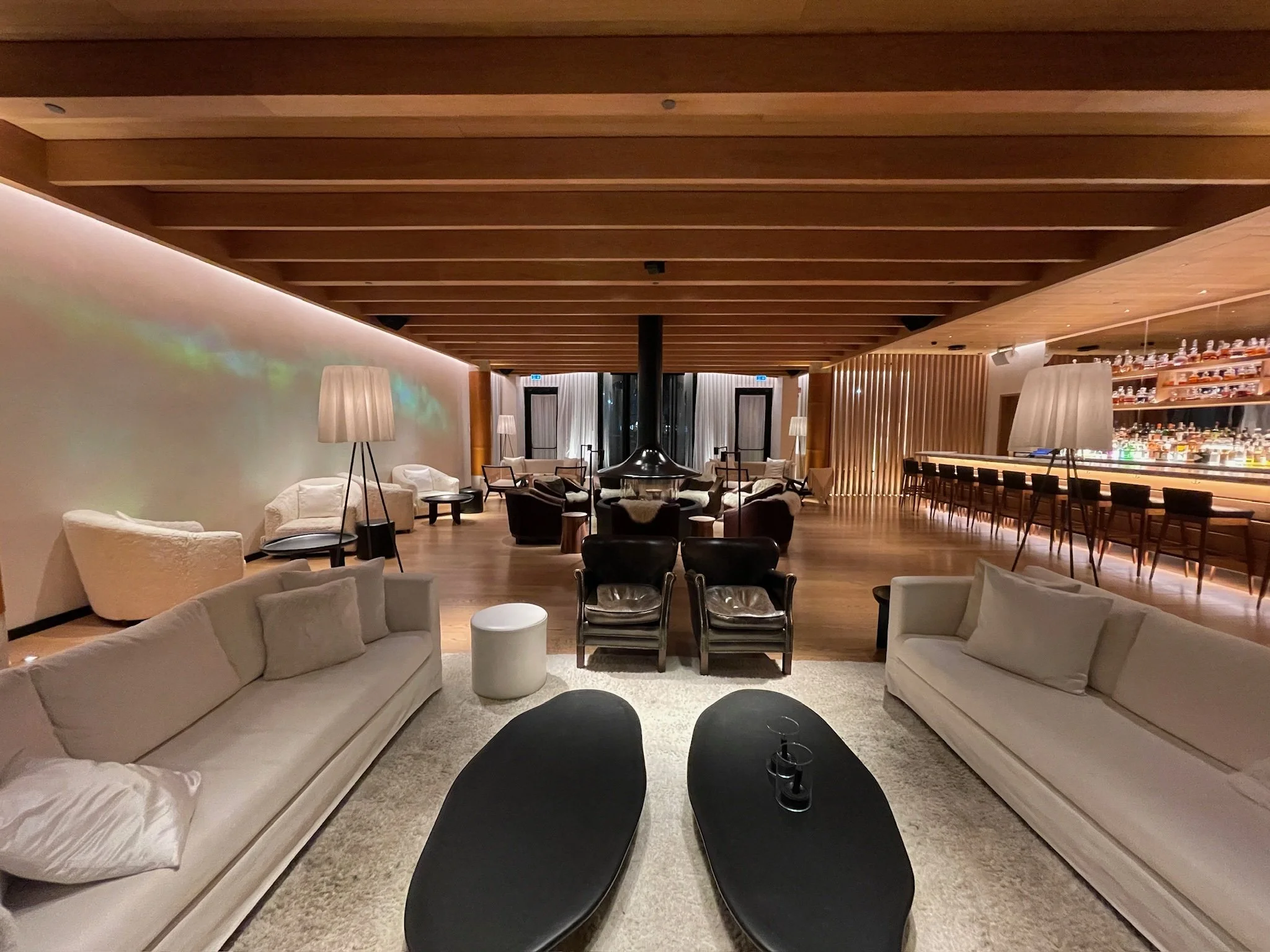 The room boasted a luxurious marble dining table for eight, creating an elegant space for entertaining or enjoying a private meal. The unique angled wood furniture added a modern touch, complementing the design of the suite. Every window framed breathtaking ice-capped mountain views, offering a perfect backdrop that truly captured the essence of Reykjavik. The view of the iconic Harpa Opera House , providing a cultural touch to the already stunning scenery. (which you can see for about 3 hours a day before you are watching the evening lights once again take center stage)